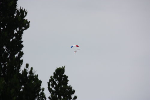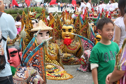 週末因為家裡要拜拜,老媽叫我要回去幫忙,我回去我想也是奉上現金為主要宗旨。 不過週六晚上回去,晚上就失眠了,忘了帶安眠藥,整晚都沒睡。 隔天早上又要去南鯤鯓,因為家裡神明要去過爐。我記得很多年來過,也是很多人,這次,是怎樣,人多成這樣,每一家廟的神明都挑在這天來過爐啊! 不過,有很多八家將、宋江陣等等各項陣頭,倒也是一飽眼福。但是沿途看來,很多少年仔都在嚼檳榔,而且是由領隊進行發放,對照每個人多少的刺龍刺虎,這些少年仔的臉龐,跟我記憶中的『那一年 我們追的女孩』的少年,感覺像是兩個世界。感嘆一番,也只能說,沒辦法就是這樣了,我們也不能期望別人的生活與我們的生活重疊。就像年輕的莫拉魯道還是得生啃鹿肝一樣,一樣都是嗜血,這樣不知是否是能較符合八家將的形象,接近祖靈啊~ 這次跟以前看比較不同的是,有..辣..妹。清涼的辣妹,站在高處,搔首弄姿的舞動曼妙身軀,不知道是人愛看還是神明愛看。 整個廟庭人又多又擠,連神明過爐,也要排很久,我被鞭炮與鼓鑼聲響轟炸到耳鳴,趕緊躲到後院清靜一番,幸好後院有一排古厝,還有一個花園,剎時安靜,盾入空靈世界。 只可惜沒停留多久,就被哥喚回去集合回家了。 下午,一夜沒睡的副作用開始顯現,我瞭解,這個時候一定得好好休息,否則免疫系統可又要作亂了。看家裡有人手,我還是告假先上台北再說。 上了高鐵,馬上就睡著了,雖然睡的很不舒服。 晚上吞了四分之一顆安眠藥,就一覺到天亮。 下午趁要出去買菜時,剛好知道國慶大典有神龍要跳傘。我走到中正紀念堂不過五分鐘,想想拿著小卡就出門了。 幸好,我還來的及,看到一點尾巴,實在太晚出門。一抬頭看到有幾個人在天空上面飄啊飄的,趕緊拿出我的小卡.......