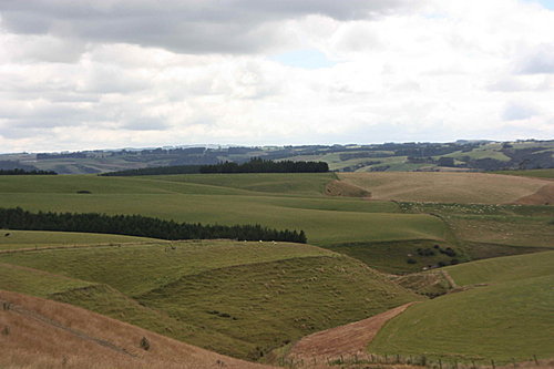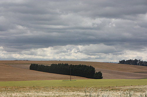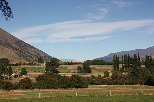 從但尼丁城往西走,周圍景象,也逐漸從平原轉向丘陵地。沿途氣候從陰雨到陰天,直至大晴天,景色隨著天氣與雲彩變化多端也成為構圖的一部份,成群牛、羊、鹿、馬滿山遍野,牠們的使命似乎都只是餵飽自己,低頭啃食牧草,我幾乎沒看到一隻瘦弱的牲畜,可見餵養的多好,但我腦中卻不自覺閃過木柵動物園那些孱弱沒精神的猛獸們。