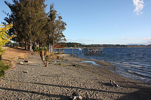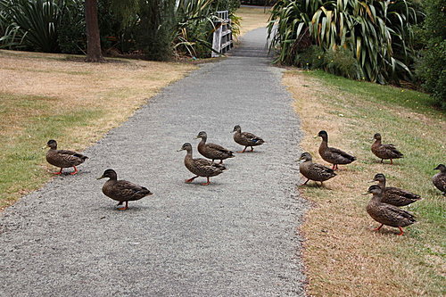 下午五點左右,趨車到了蒂阿納湖。說真的,沒下雨但天氣很冷。一下車,我的手指好像瞬間結冰一樣。我們先到阿納野生動物園保育中心晃了一下,我自己一個人下車走著走著,看到一群鴨子排列很整齊大搖大擺從湖邊走上岸來壓馬路,而且很神氣,超神奇的。其實,我腦中一直盤旋,『這鴨子挺肥的,不知是否可以吃』。